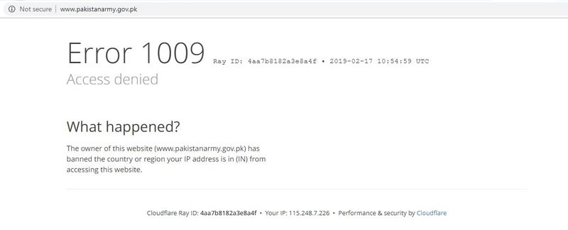 പാക് സൈന്യത്തിന്റെ ഔദ്യോഗിക വെബ്സൈറ്റായ www.pakistanarmy.gov.pk യും ഇപ്പോൾ പാക്കിസ്ഥാന് പുറത്ത് കിട്ടുന്നില്ലെന്നാണ് പാകിസ്ഥാൻ പരാതിപ്പെടുന്നത് . ഇന്ത്യൻ ഐപി അഡ്രസ് ഉപയോഗിച്ച് ഈ വെബ്സൈറ്റിലേക്ക് പ്രവേശിക്കാൻ ശ്രമിക്കുമ്പോൾ താഴെ കാണുന്ന സന്ദേശമാണ് ലഭിക്കുന്നത്.