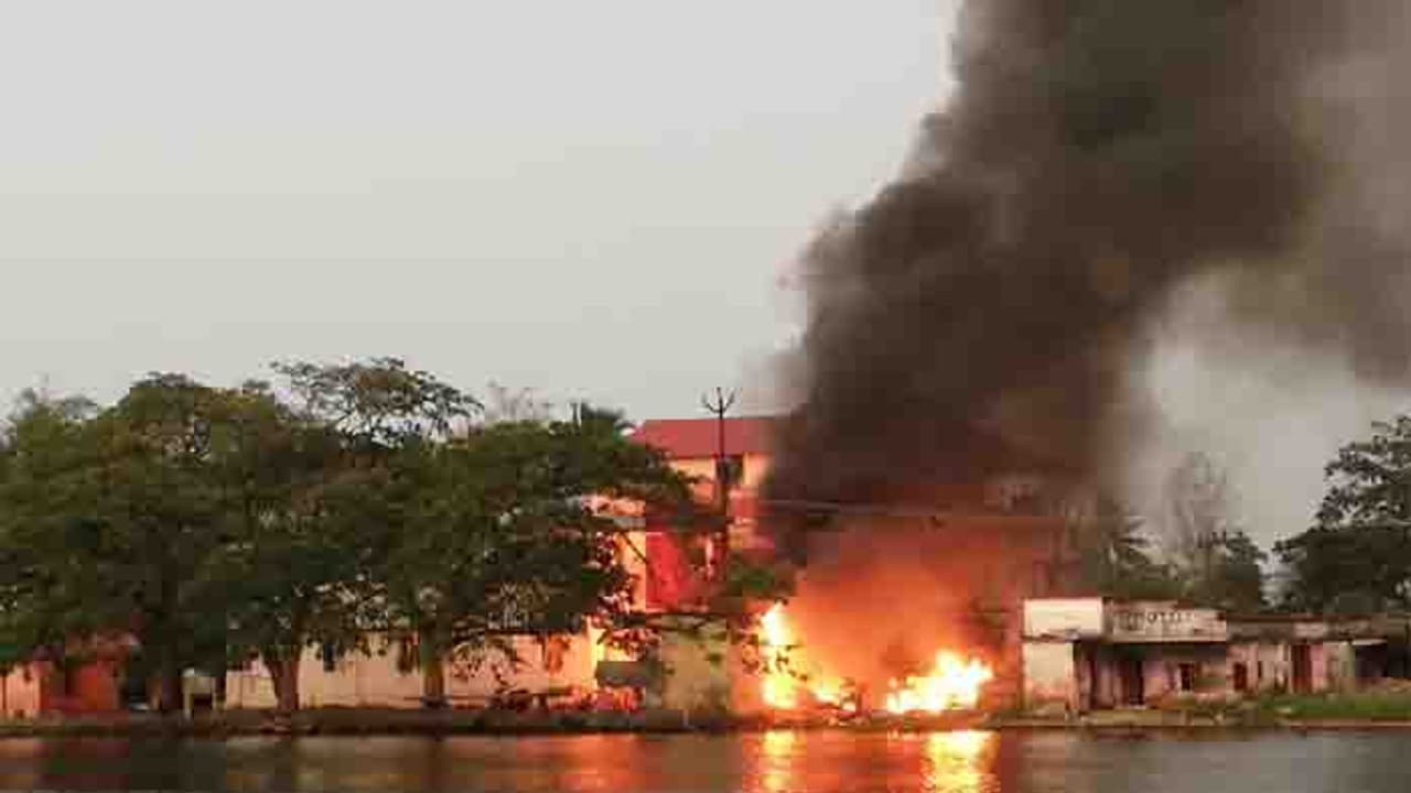 ആംബുലന്സിന് സമീപത്തുണ്ടായിരുന്ന ഓട്ടോറിക്ഷ, രണ്ട് ബൈക്ക്, കാര്, എന്നിവ പൂര്ണ്ണമായും കത്തി നശിച്ചു. സമീപത്തെ കടകളിലേക്കും തീ പടർന്നു.