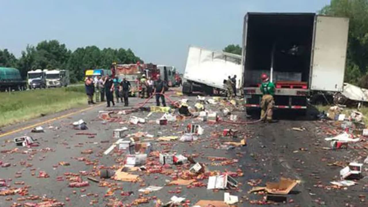 അമേരിക്കയിലെ ആര്ക്കന്സാസ് പാതയിലാണ് ചരക്കുമായി വന്ന ട്രക്ക് മറിഞ്ഞത്. ഫയര്ബാള് കമ്പനിയുടെ മിനിയേച്ചര് വിസ്കി ബോട്ടിലുകള് ആണ് ചരക്ക് പൊട്ടി റോഡില് നിരന്നത്. പൊട്ടിയ ബോട്ടിലുകളും റോഡില് പരന്ന വിസ്കിയും ഗതാഗത വകുപ്പ് ഉദ്യോഗസ്ഥര് മാറ്റി. ഇത് ആദ്യമായല്ല ഈ പാതയില് ഇത്തരം അപകടം ഉണ്ടാവുന്നത്. സമാനമായ അപകടത്തില് റോഡില് ലക്ഷക്കണക്കിന് മുട്ടയും, ബിയര് ബോട്ടിലുകളും പടര്ന്ന സംഭവം ഇതിന് മുമ്പ് ഉണ്ടായിട്ടുണ്ട്.