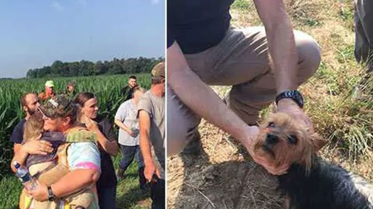 റെമി എലിയറ്റ് എന്ന മൂന്നു വയസുകാരിയെയാണ് കാണാതായത് നായയുടെ ശബ്ദം കേട്ടെത്തിയ വീട്ടുകാര്‍ കുട്ടിയെ ചോളപ്പാടത്ത് നിന്ന് കണ്ടെത്തുകയായിരുന്നു