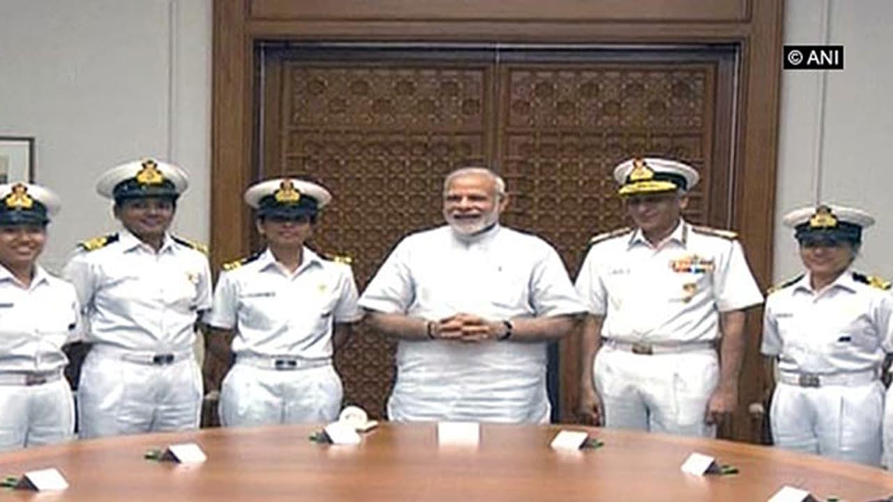 ദില്ലി: നാവിക സാഗര് പരിക്രമ എന്ന ചരിത്ര ദൗത്യം പൂര്ത്തിയാക്കി ഇന്ത്യന് നേവിയുടെ അഭിമാനമായി മാറിയ ആറംഗ വനിതാ സംഘത്തെ പ്രധാനമന്ത്രി സന്ദര്ശിച്ചു. ലെഫ്റ്റനന്റ് കമാന്റര് വര്ത്തിക ജോഷിയുടെ നേതൃത്വത്തിലാണ് ആറംഗ സംഘം ലോകം ചുറ്റിയത്.