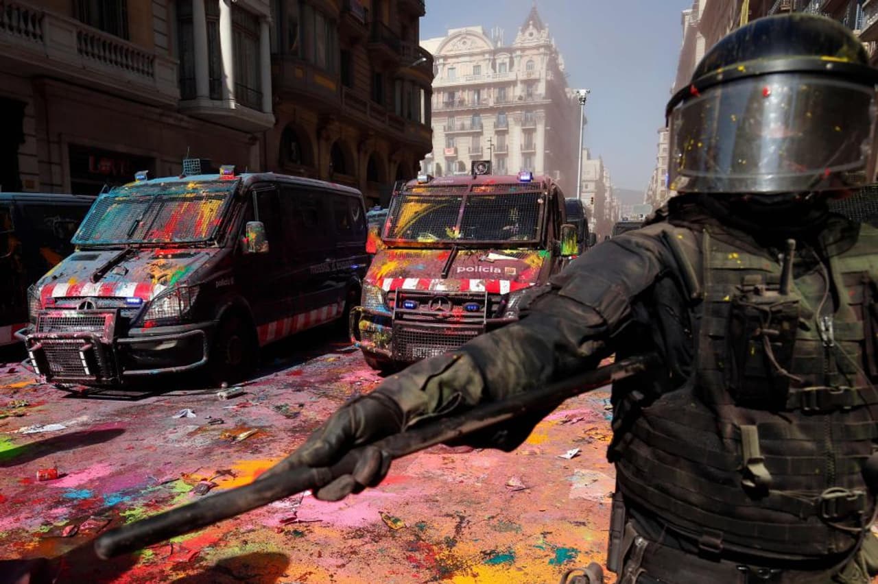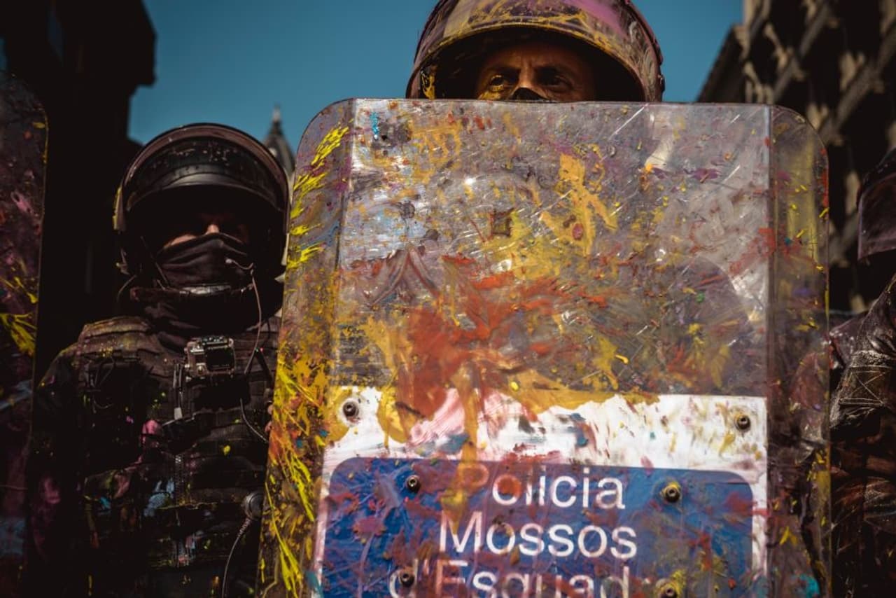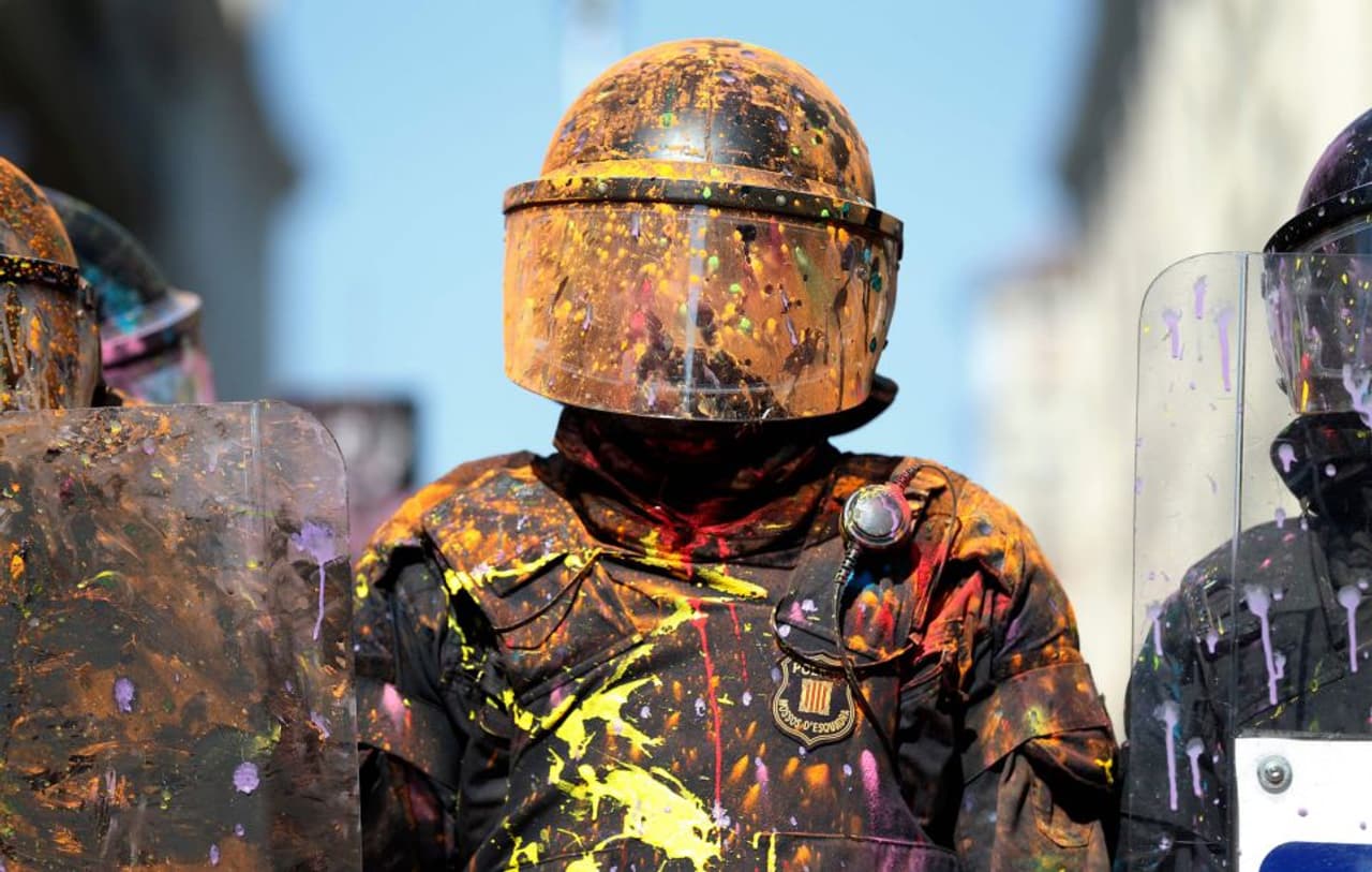 ബാഴ്സിലോണയിൽ പൊലീസുകാരും സ്വാതന്ത്ര്യ വാദികളും തമ്മിൽ ഏറ്റുമുട്ടി. കറ്റലോണിയ ഹിതപരിശോധനയുടെ ഒന്നാം വാർഷിക ആഘോഷത്തിന് ദിവസങ്ങൾ ബാക്കി നിൽക്കെയാണ് ഏറ്റുമുട്ടൽ. പ്രതിഷേധക്കാർ വിവിധ നിറങ്ങൾ പൊലീസുകാരുടെ മേൽ വാരി വിതറി വ്യത്യസ്തമായ പ്രതിഷേധവുമായാണ് രംഗത്തെത്തിയത്.