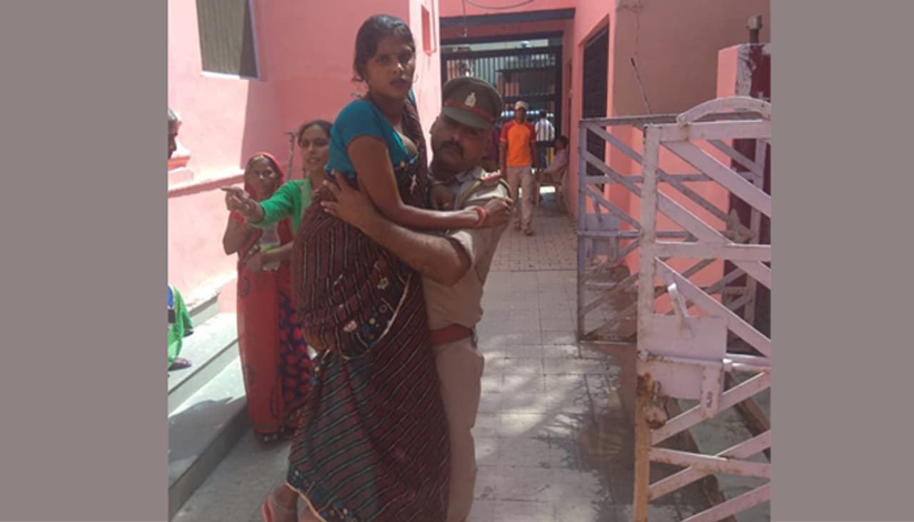 മധുര റെയില്വേ പൊലീസ് ഉദ്യേഗസ്ഥനായ സോനു കുമാറാണ് പ്രസവ വേദന അനുഭവപ്പെട്ട യുവതിയെ ചുമന്ന് ആശുപത്രിയിൽ എത്തിച്ചത്.