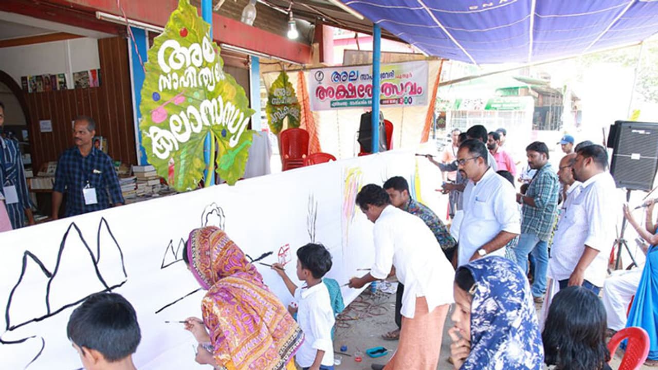 കോഴിക്കോട് : പൂനൂര് അല അക്ഷരോത്സവം പരിപാടിയുടെ ഭാഗമായി പൂനൂര് പുഴ നശീകരണത്തിനെതിരെ പ്രതിഷേധ സൂചകമായി സമൂഹചിത്രരചന സംഘടിപ്പിച്ചു. ആലാപ് കലാവിദ്യാലയത്തിലെ പതിനഞ്ചോളം കുരുന്നുകളും ചിത്രം വരക്കാനെത്തി. ചടങ്ങ് ഗിരീഷ് തേവള്ളി ഉദ്ഘാടനം ചെയ്തു. പ്രശസ്ത ചിത്രകാരന് സിഗ്നി ദേവരാജന് ചിത്രം വരച്ച് പ്രതിഷേധവര ഉദ്ഘാടനം ചെയ്തു. രാജന് ചെമ്പ്ര, എ.ആര് കാന്തപുരം, കിഷോര് താമരശ്ശേരി എന്നിവര് നേതൃത്വം നല്കി. അക്ഷരോത്സവത്തിന്റെ ഭാഗമായി സംഘടിപ്പിച്ച കഥ-കവിയരങ്ങ് ബാപ്പു വാവാട് ഉദ്ഘാടനം ചെയ്തു. സലീം വേണാടി അധ്യക്ഷത വഹിച്ചു.