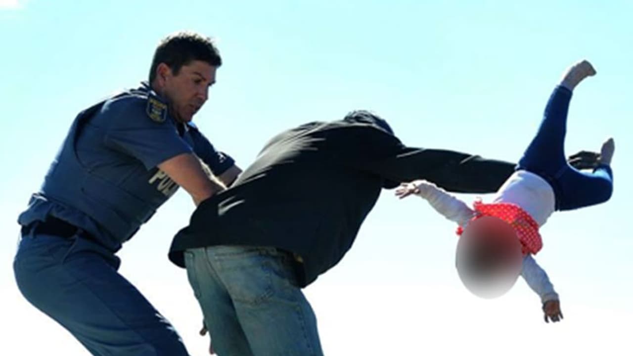 പൊലീസ് സംഘം നോക്കി നില്ക്കേ അച്ഛന് ആറുമാസം പ്രായമുള്ള പെണ്കുഞ്ഞിനെ കെട്ടിടത്തിന്റെ മുകളില് നിന്നും താഴേക്കു വലിച്ചെറിഞ്ഞു. എന്നാല് താഴെ നിന്ന പൊലീസുകാര് കുട്ടിയെ പിടിച്ചതിനാല് കുഞ്ഞ് തലനാരിഴയ്ക്ക് രക്ഷപ്പെട്ടു. ദക്ഷിണാഫ്രിക്കയിലെ കിഴക്കന് തീരനഗരമായ പോര്ട്ട് എലിസബത്തിലാണ് സംഭവം.