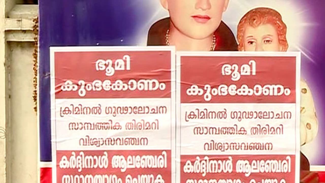 സീറോ മലബാർ സഭാ ഭൂമി ഇടപാട് കർദിനാളിനെതിരെ പോസ്റ്ററുകൾ സ്ഥാനത്യാഗം ചെയ്യണമെന്നാവശ്യം