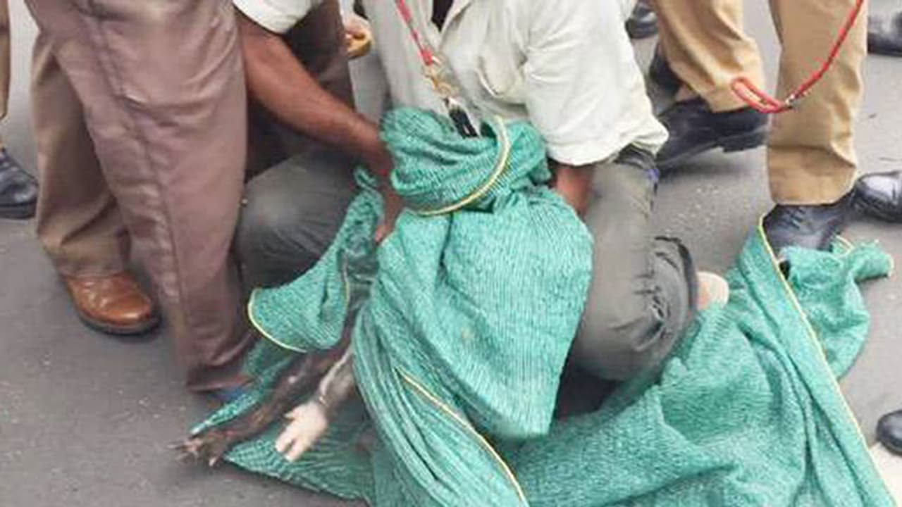 തമിഴ് സംഘടനയുടെ നേതൃത്വത്തില് നടന്ന പ്രതിഷേധം പൊലീസ് ഇടപെട്ട് തടഞ്ഞത് നേരിയ സംഘര്ഷത്തിനിടയാക്കി.എട്ട് പ്രവര്ത്തകരെയും നാല് പന്നികളെയും പൊലീസ് കസ്റ്റഡിയിലെടുത്തു.സമരക്കാരെത്തുമെന്ന വിവരത്തെത്തുടര്ന്ന് രാവിലെത്തന്നെ പൊലീസ് വലയും വിരിച്ച് കാത്തിരുന്നു. പതിനൊന്നരയോടെ പന്നിക്കുട്ടികളുമായെത്തിയ പ്രതിഷേധക്കാരെ പൊലീസ് ഉടന് കസ്റ്റഡിയിലെടുത്തു നീക്കി.
