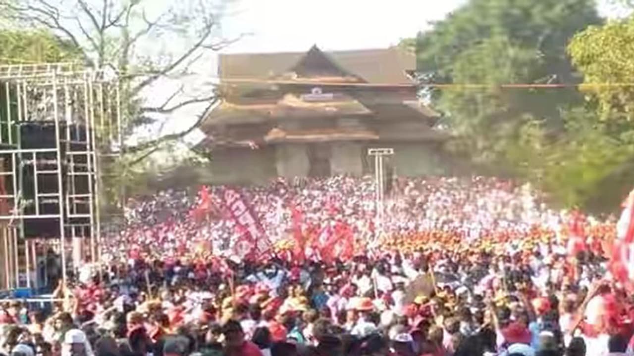 തൃശൂര്: നാല് ദിവസങ്ങളായി തുടരുന്ന സിപിഐ എം സംസ്ഥാന സമ്മേളനത്തിന് കൊടിയിറങ്ങി. പതിനായിരത്തോളം വനിതകളടക്കം 25,000 റെഡ് വളണ്ടിയര്മാര് അണിനിരക്കുന്ന മാര്ച്ചോടെയായിരുന്നു സമാപനം. തേക്കിന്കാട് മൈതാനത്ത് നിങ്ങിനിറഞ്ഞ ജനസഞ്ചയത്തെ സാക്ഷിയാക്കി സിപിഐ എം ജനറല് സെക്രട്ടറി സീതാറാം യെച്ചൂരി ഗാര്ഡ് ഓഫ് ഓണര് സ്വീകരിച്ചു. സമാപന പൊതുസമ്മേളനത്തിന് തുടക്കമായി.