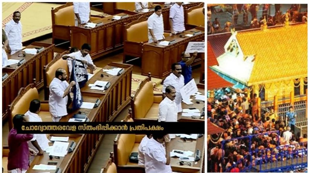 തിരുവനന്തപുരം: ശബരിമല പ്രശ്നത്തിൽ നിയമസഭയിൽ പ്രതിപക്ഷ പ്രതിഷേധം. ചോദ്യോത്തര വേളയിൽ മുഖ്യമന്ത്രി സംസാരിക്കുന്നതിനിടെ പ്രതിപക്ഷ എംഎല്എമാര് ബഹളം തുടങ്ങി. ശബരിമലയിൽ നിരോധനാജ്ഞ പിൻവലിക്കണം.