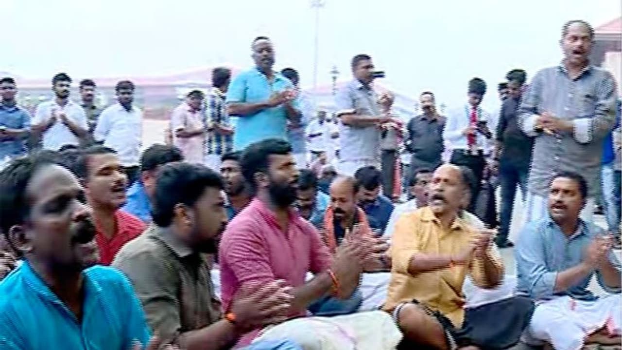 പൊലീസ് വാഹനമല്ലാതെ വിമാനത്താവളത്തിന് പുറത്തിറങ്ങാന് തൃപ്തി ദേശിയിക്ക് മുന്നില് മറ്റ് വഴികളില്ല. എന്നാല് പൊലീസ് വാഹനങ്ങളിലോ സര്ക്കാര് സംവിധാനം ഉപയോഗിച്ചോ ഇവരെ കൊണ്ടുപോകാന് ശ്രമിച്ചാല് തടയുമെന്ന് പ്രതിഷേധക്കാര് അറിയിച്ചിട്ടുണ്ട്. സ്ത്രീകള് ഉള്പ്പെടെ നിരവധിപ്പേര് വിമാനത്തിന് മുന്നിലേക്ക് എത്തിക്കൊണ്ടിരിക്കുകയാണ്. ഇവര് പുറത്ത് കുത്തിയിരുന്ന് നാമജപം സമരം തുടരുന്നു. പ്രതിഷേധക്കാരുമായി സമവായത്തിന് ശ്രമിച്ചെങ്കിലും വഴങ്ങിയിട്ടില്ല.