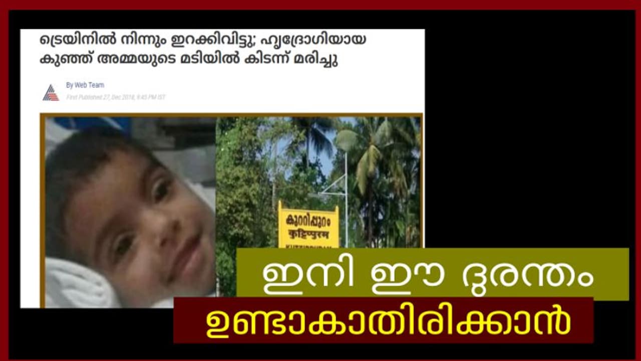കുട്ടിയെ തിരുവനന്തപുരം ശ്രീചിത്രയില് എത്തിക്കാന് രാത്രി റെയിൽവേ സ്റ്റേഷനിലെത്തിയ ഇവര് ജനറല് ടിക്കറ്റ് എടുത്താണ് ട്രെയിനില് കയറിയത്. തിരക്കേറിയ ബോഗിയിൽ കൊണ്ടുപോകുന്നതു നില വഷളാക്കുമെന്നതിനാൽ പിന്നീട് സുമയ്യ കുഞ്ഞുമായി സ്ലീപ്പർ കോച്ചിൽ കയറി. ടിക്കറ്റ് പരിശോധകർ ഓരോ കോച്ചിൽനിന്നും ഇവരെ ഇറക്കിവിട്ടു. സീറ്റിനും വൈദ്യസഹായത്തിനും വേണ്ടി ആവർത്തിച്ച് അഭ്യർഥിച്ചിട്ടും ലഭിച്ചില്ലെന്നും അടുത്ത കോച്ചിലേക്കു മാറണമെന്ന് ആവശ്യപ്പെട്ട് ഓരോ സ്റ്റേഷനിലും ടിക്കറ്റ് പരിശോധകർ ഇറക്കിവിടുകയായിരുന്നെന്നും കുട്ടിയുടെ മാതാപിതാക്കൾ പറഞ്ഞു.