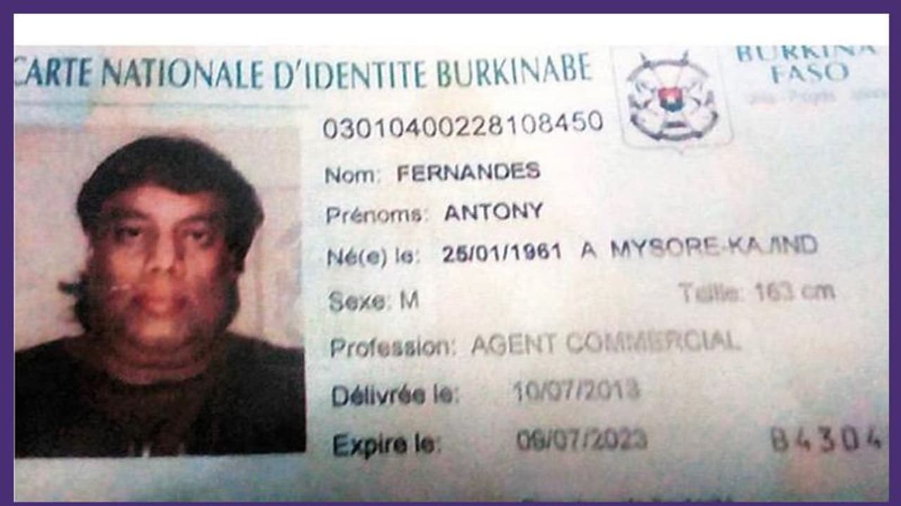 ആന്റണി ഫെർണാണ്ടസ് എന്ന പേരിലായിരുന്നു ഈ ആഫ്രിക്കൻ രാജ്യത്ത് കഴിഞ്ഞത്. 2013ലാണ് തിരിച്ചറിയൽ കാർഡ് നേടിയത്. കമേർസ്യൽ ഏജന്റ് എന്നായിരുന്നു അറിയിച്ചത്. മൈസൂർ സ്വദേശി എന്നാണ് അവിടുത്തെ സർക്കാരിനെ അറിയിച്ചത്.