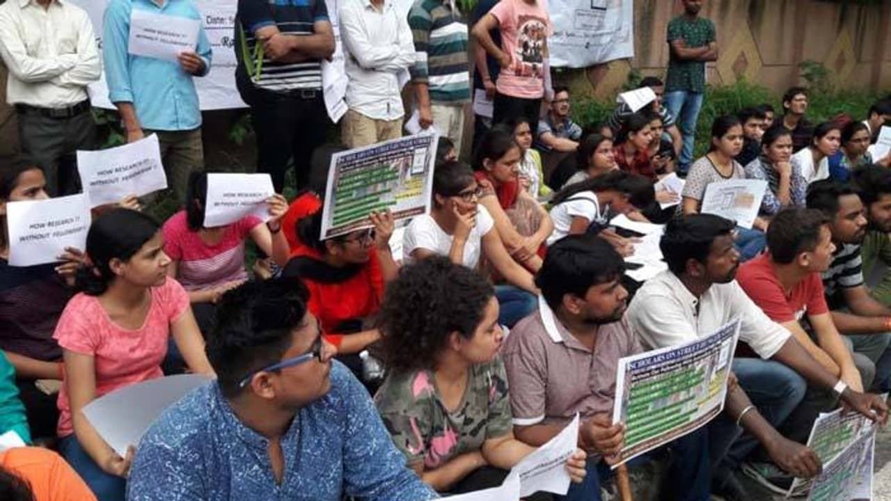 ഗവേഷക വിദ്യാർത്ഥികളുടെ സംയുക്ത മുന്നണിയാണ് ഇന്ന് നിരാഹാര സമരം നടത്തിയത്. ജെആർഎഫ് സർട്ടിഫിക്കറ്റുകൾ വിതരണം ചെയ്യുക, ഫെലോഷിപ്പ് എത്രയും പെട്ടന്ന് അതാത് ജെആർഎഫ് അക്കൗണ്ടുകളിൽ നേരിട്ട് നൽകുക തുടങ്ങിയ ആവശ്യങ്ങൾ ഉന്നയിച്ചാണ് സമരം. ആവശ്യങ്ങൾ പരിഗണിച്ചില്ലെങ്കിൽ സമരം ശക്തമാക്കാനാണ് ഗവേഷണ വിദ്യാർത്ഥികളുടെ തീരുമാനം
