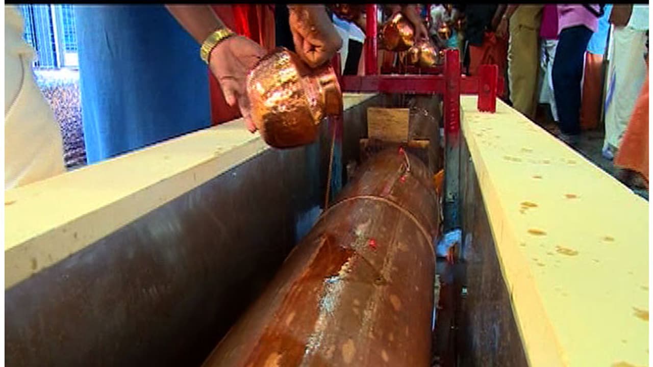 രാവിലെ ഏഴരക്കും എട്ടരക്കും ഇടയിൽ ആണ് തൈലാധിവാസ ചടങ്ങുകൾ നടന്നത്.ശരണ മന്ത്രങ്ങൾ നിറഞ്ഞു നിന്ന അന്തരീക്ഷത്തിൽ പ്രതേക പൂജകൾക്ക് ശേഷം 51 കുടങ്ങളിൽ നിറച്ച തൈലം എണ്ണത്തോണിയിലേക്കു പകർന്നു. കഴിഞ്ഞ ആറു മാസത്തിനു മുൻപാണ് തേക്കുമരം പമ്പയിൽ എത്തിച്ചത്. കൊടിമരനിർമാണത്തിനു മുന്നോടിയായി തടിയൊരുക്കുന്ന ജോലികൾ രണ്ടു ആഴ്ച മുൻപേ പൂർത്തിയായി.