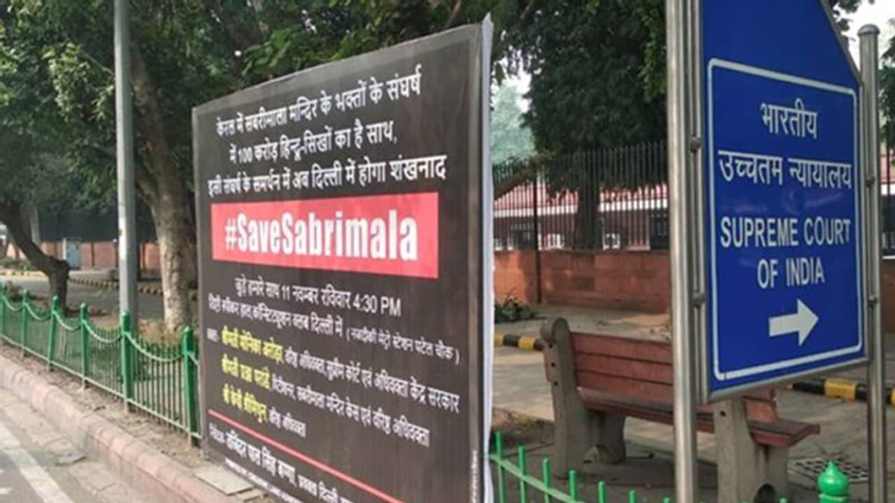 ശബരിമല വിഷയത്തില് സുപ്രിംകോടതി മന്ദിരത്തിന് മുമ്പിലും പ്രതിഷേധം. ശബരിമല ആചാരങ്ങള് സംരക്ഷിക്കണമെന്ന ആവശ്യമുന്നയിക്കുന്ന സേവ് ശബരിമല എന്ന് ഹാഷ് ടാഗുള്ള ഫ്ലക്സ് ബോര്ഡ് സ്ഥാപിച്ചാണ് സുപ്രിംകോടതിക്ക് മുന്നിലെ പ്രതിഷേധം.