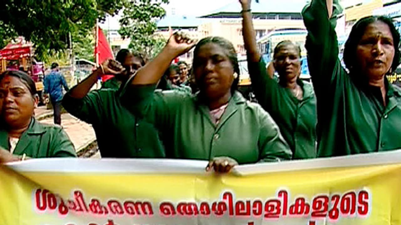 പ്രതിഷേധിക്കാൻ തയ്യാറല്ലാ ഇവര്. പുലര്ച്ചെ 6.30ക്ക് തുടങ്ങുന്നതാണ് ഇവരുടെ ജോലി. തേക്കിൻകാട് മൈതാനത്തിലെ പുല്ലുവെട്ടലും മാലിന്യം നീക്കലുമെല്ലാം ഇവരുടെ ചുമതലയാണ്. 12 മണിയോടെ പണി തീര്ത്ത് ഇവര് നേരെ കോര്പ്പറേഷന് ഓഫീസിലേക്ക് ഇറങ്ങും. കൂലിവാങ്ങാനല്ല, കൂലികിട്ടാനായുള്ള സമരത്തിനായാണ് ഈ പോക്ക്.