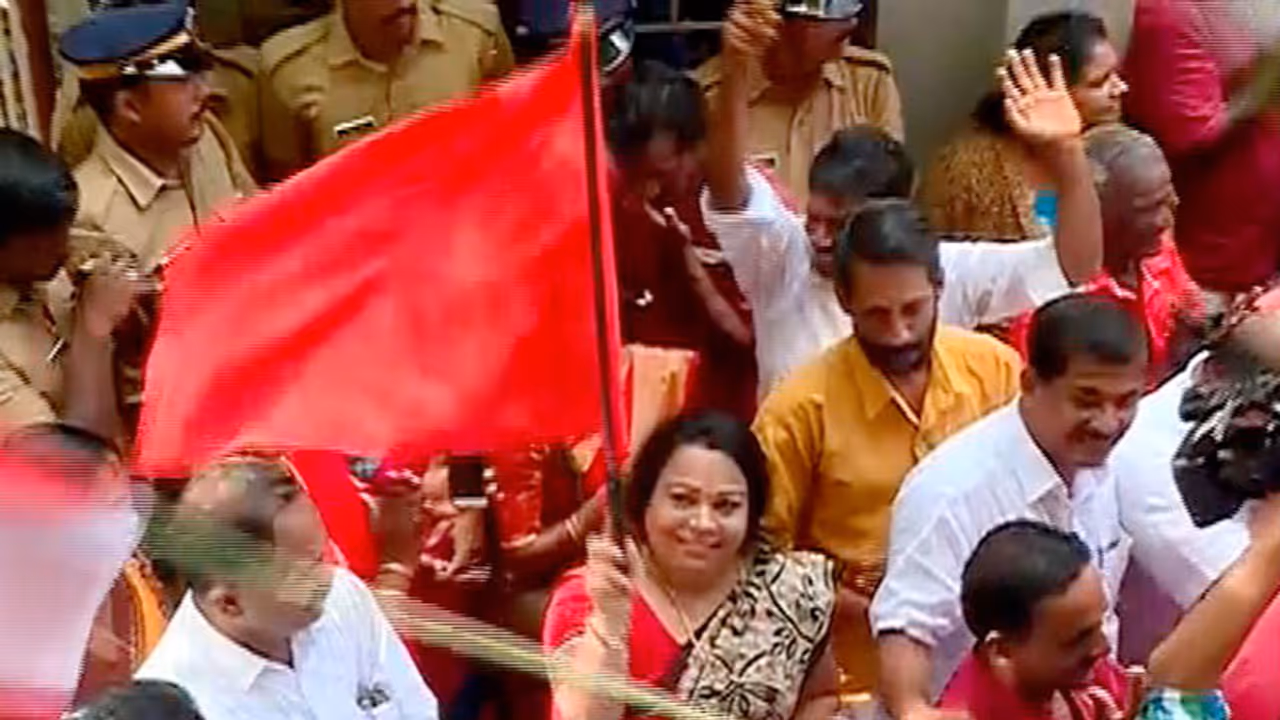 എല്‍ഡിഎഫ് ആഘോഷങ്ങളില്‍ ചെങ്കൊടിയുമായി ശോഭനാ ജോര്‍ജ്