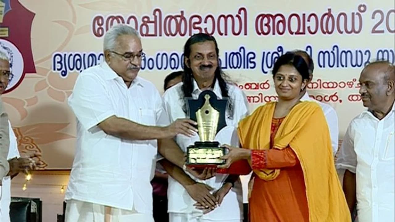 തിരുവനന്തപുരത്ത് സംഘടിപ്പിച്ച ചടങ്ങില് പന്ന്യൻ രവീന്ദ്രൻ, തോപ്പില് ഭാസിയുടെ ഭാര്യ അമ്മിണി അമ്മ തുടങ്ങിയവര് പങ്കെടുത്തു. മാധ്യമ രംഗത്തെ സമഗ്രമായ പ്രവർത്തനങ്ങൾക്കാണ് അവാർഡ്. തോപ്പിൽ ഭാസി ഫൗണ്ടേഷൻ അധ്യക്ഷൻ പന്ന്യൻ രവീന്ദ്രന്റെ നേതൃത്വത്തിലുള്ള ജൂറിയാണ് അവാർഡ് നിശ്ചയിച്ചത്.