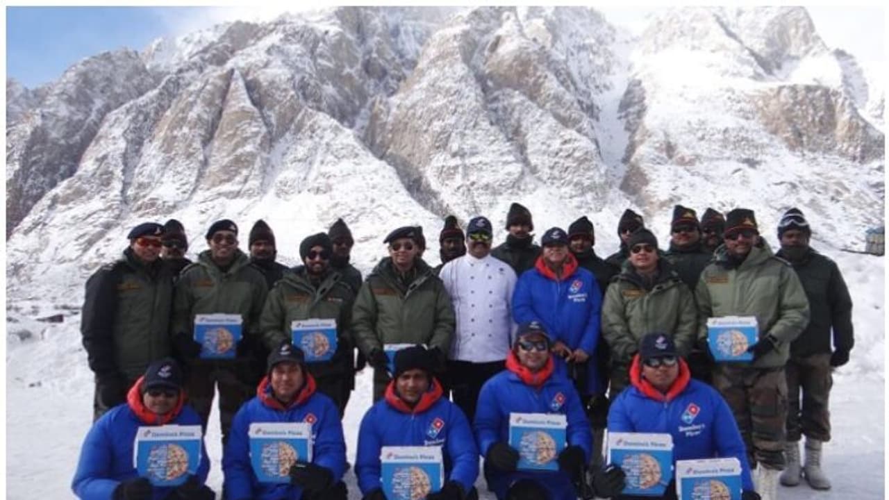 സിയാച്ചിനിൽ: റിപ്പബ്ലിക് ദിനത്തിൽ എല്ല് കോച്ചുന്ന തണുപ്പത്ത് ഡ്യൂട്ടി ചെയ്തിരുന്ന സൈനികർക്ക് ഇന്നൊരു സർപ്രൈസ് സമ്മാനം കിട്ടി. നല്ല ചൂടൻ പിസ! പിസ കമ്പനിയായ ഡോമിനോസാണ് സിയാച്ചിനിലെ സൈനികർക്ക് ചൂട് പിസയുണ്ടാക്കി എത്തിച്ചത്.