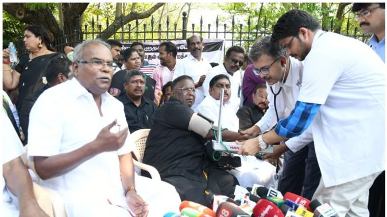 പുതുച്ചേരിയില് ലഫ്റ്റനന്റ് ഗവര്ണര്ക്കെതിരെ മുഖ്യമന്ത്രി നടത്തുന്ന സമരം മൂന്നാം ദിവസവും തുടരുകയാണ്. മുഖ്യമന്ത്രിക്ക് ഒപ്പം മന്ത്രിമാരും എംഎല്എമാരും ഗവര്ണറുടെ ഒദ്യോഗിക വസതിക്ക് മുന്നില് കുത്തിയിരുന്ന് പ്രതിഷേധിക്കുന്നു. ദില്ലിയിലുള്ള ലഫ്റ്റനന്റ് ഗവര്ണര് മടങ്ങിയെത്തി ആവശ്യങ്ങള് അംഗീകരിക്കാതെ സമരം അവസാനിപ്പിക്കില്ലെന്ന നിലപാടിലാണ് മുഖ്യമന്ത്രി.
