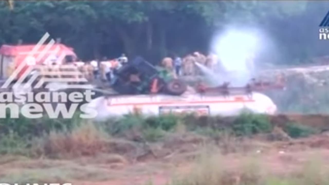 അപകടത്തെ തുടര്ന്ന് കോഴിക്കോട്-തൃശൂർ ദേശീയ പാതയിൽ ഗതാഗതം തിരിച്ചുവിട്ടു. ഫയർഫോഴ്സും പൊലീസും രക്ഷാപ്രവർത്തനം തുടങ്ങി. പ്രദേശത്തെ വൈദ്യുതി ബന്ധം വിച്ഛേദിച്ചിട്ടുണ്ട്.