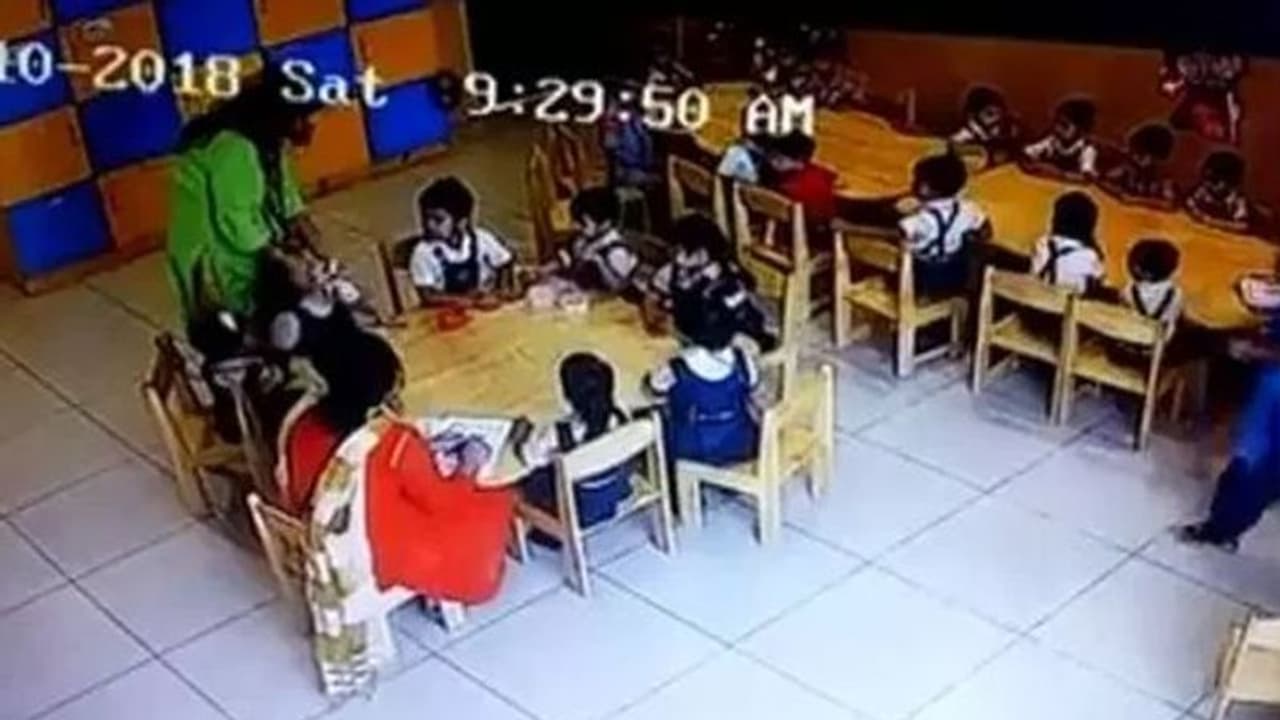 വീഡിയോ സമൂഹമാധ്യമങ്ങളിൽ പ്രചരിച്ചതോടെയാണ് സംഭവം പുറം ലോകം അറിയുന്നത്. ക്ലാസിലിരുന്ന് ബഹളം വെക്കുന്ന കുട്ടികളുടെ വായിൽ അധ്യാപിക സെല്ലോടേപ്പ് ഒട്ടിക്കുന്ന ദൃശ്യങ്ങൾ വീഡിയോയിൽ കാണാന് സാധിക്കും. നാല് വയസ്സായ ഒരു ആണ് കുട്ടിയോടും പെണ്കുട്ടിയോടുമാണ് അധ്യാപിക ഇത്തരത്തില് പെരുമാറിയത്.