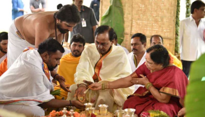 ഭാര്യ ഉള്പ്പെടെയുള്ള കുടുംബാംഗങ്ങളെ കൂടി പങ്കെടുപ്പിച്ചായിരുന്നു യജ്ഞം. അതേസമയം സംസ്ഥാനത്തിന്റെ അഭിവൃദ്ധിക്കും വളര്ച്ചയ്ക്കും വേണ്ടിയാണ് മുഖ്യമന്ത്രി യജ്ഞം നടത്തിയതെന്ന് സര്ക്കാര് പ്രസ്താവനയിലൂടെ അറിയിച്ചു. 'രാജ ശ്യാമള യാഗം', 'ചണ്ഡീയാഗം' തുടങ്ങിയ യാഗങ്ങളും മറ്റ് പൂജാകര്മ്മങ്ങളുമാണ് മുഖ്യമന്ത്രി ഇതിനായി നടത്തിയതെന്നും പ്രസ്താവന വിശദീകരിക്കുന്നു.നേരത്തേ ചന്ദ്രശേഖര റാവു, നാമനിര്ദേശ പത്രികകള് ക്ഷേത്രത്തില് പൂജിച്ച ശേഷം സമര്പ്പിച്ചതും വാര്ത്തകളില് ഇടം നേടിയിരുന്നു.