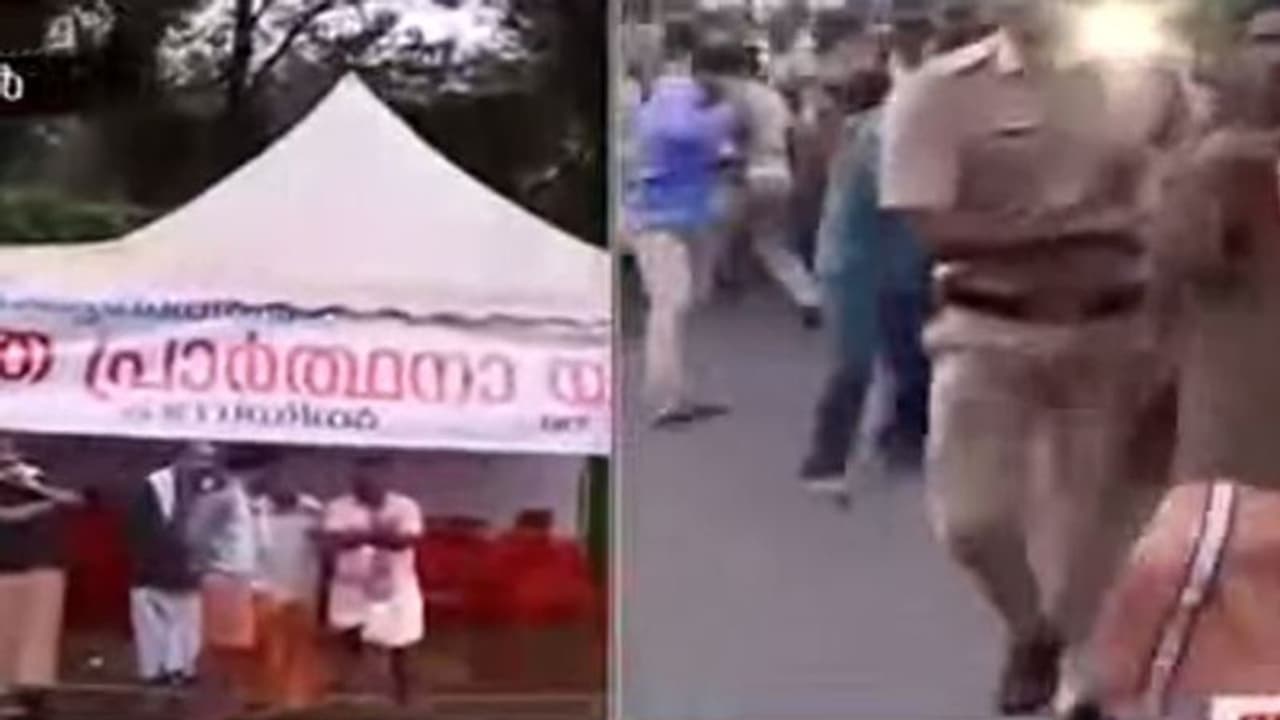 ബോധപൂര്വ്വം സംഘര്ഷം ഉണ്ടാക്കുന്ന ശ്രമം മുന്നില്കണ്ടാണ് പൊലീസ് കടുത്ത നടപടിയിലേക്ക് നീങ്ങിയത്. സമരപന്തല് ഒഴിപ്പിച്ച് പന്തല് പൊളിച്ച് നീക്കി. എസ്പിയുടെ നിര്ദ്ദേശപ്രകാരമാണ് പൊലീസ് നടപടി. സമരപന്തലിലെ കസേരകള് പൊലീസ് എടുത്തുമാറ്റി. അറുപത്വനിതാ പൊലീസ് ഉദ്യോഗസ്ഥരെ സമരപന്തലിന് സമീപം വിന്യസിച്ചു. എരുമേലിയിലും പൊലീസ് സുരക്ഷ ശക്തമാക്കിയിട്ടുണ്ട്.