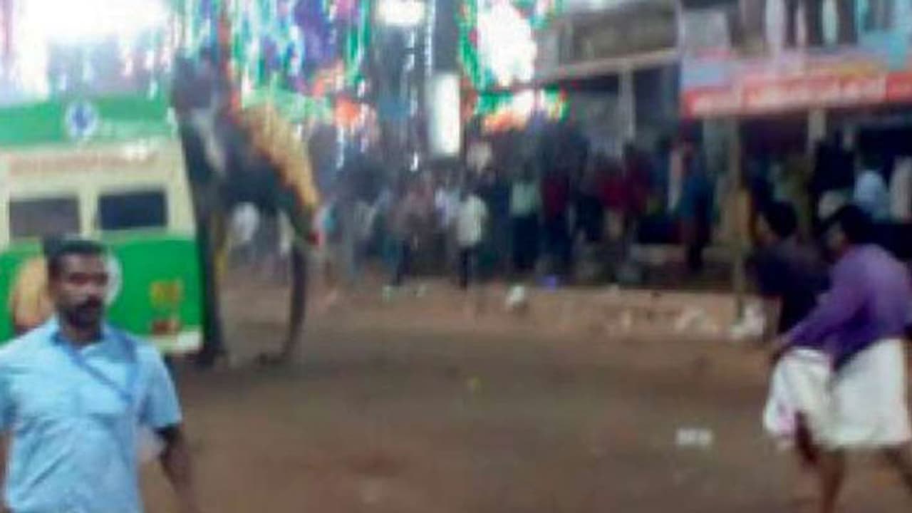 തഴുത്തല റോഡില്ക്കൂടി ഓടിയ ആന ഏറെ പരിഭ്രാന്തിയുണ്ടാക്കി പാഞ്ഞു നടക്കുന്നതിനിടെ എസ്.പി.സി.എ. എലിഫന്റ് സ്ക്വാഡിലെ ഡോ. അരവിന്ദ് മയക്ക് വെടിവച്ചു. വെടികൊണ്ട് ഓടിയ ആന ക്ഷേത്രത്തിന് മുന്പിലെത്തി മയങ്ങിനിന്നു. പിന്നീട് പാപ്പാന്മാര് ചേര്ന്ന് അടുത്ത പുരയിടത്തിലേയ്ക്ക് ആനയെ മാറ്റിത്തളച്ചു. റാപ്പിഡ് റെസ്പോണ്സ് ആന്ഡ് റെസ്ക്യൂ ഫോഴ്സിലെ പോലീസുകാരന് ചവറ സ്വദേശി അരുണ്, പട്ടത്താനം സ്കന്ദന് എന്ന ആനയുടെ പാപ്പാന് കോട്ടയം സ്വദേശി സുബിന്, പേരയം സ്വദേശി അക്ഷയകുമാര്, പുന്തലത്താഴം സ്വദേശി രാഹുല്രാജ്, രഞ്ജുകൃഷ്ണ എന്നിവര്ക്കാണ് തിരക്കിനിടെ പരിക്കേറ്റത്. ഇവര് കൊട്ടിയത്ത് സ്വകാര്യ ആശുപത്രിയില് ചികിത്സയിലാണ്.