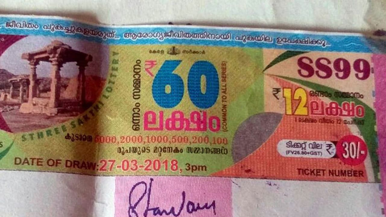 പൂച്ചാക്കല്‍ പെരുമ്പളം കവലയില്‍ അപ്പുക്കുട്ട കൈമളുടെ ഉടമസ്ഥതയിലുള്ള മഹാദേവ ലക്കി സെന്ററിലാണ് ഇത്തരത്തിലുള്ള ടിക്കറ്റുകള്‍ ലഭിച്ചത്.