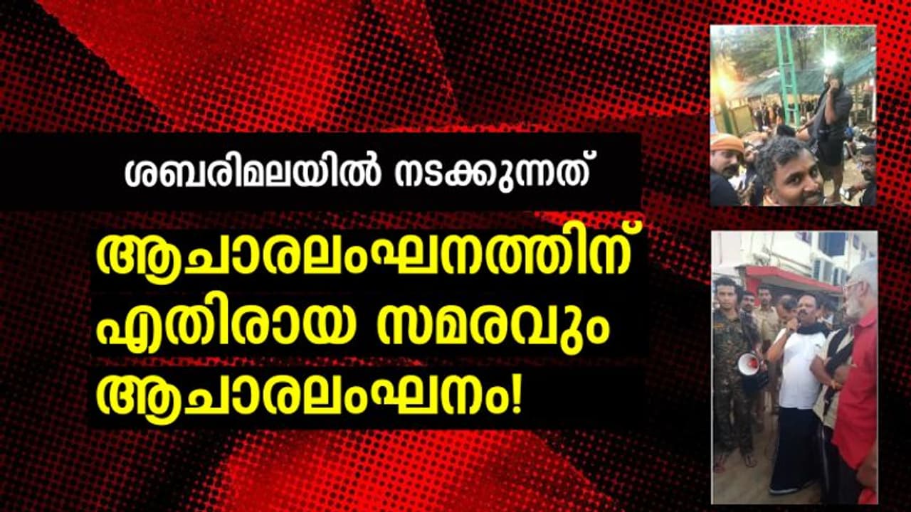 ആചാരങ്ങള് ലംഘിച്ച് പതിനെട്ടാം പടിയില് കുത്തിയിരിപ്പ് സമരം