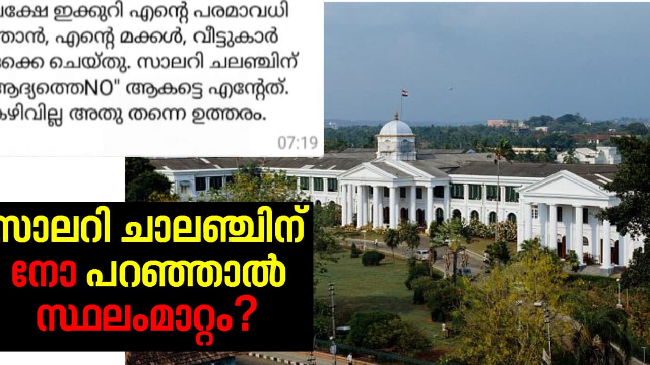 സെക്രട്ടേറിയറ്റിൽ ഇടത് അനുകൂല സർവീസ് സംഘടനയുടെ സജീവ പ്രവർത്തന് കൂടിയാണ അനിൽ രാജ്.ദേശീയ സമ്പാദ്യ പദ്ധതി ഡയറക്ടറേറ്റിലേക്കാണ് കെഎസ് അനില് രാജിനെ സ്ഥലം മാറ്റി ഉത്തരവ് വന്നത്. സാമ്പത്തിക പരാധീനതമൂലം ഭാര്യ ചലഞ്ചിനോട് യെസ് പറയുകയും താന് നോ പറയുകയുമാണെന്ന് ഉദ്യോഗസ്ഥരുടെ വാട്സാപ്പ് ഗ്രൂപ്പില് അനില് രാജ് മെസേജ് ഇട്ടിരുന്നു. ഇതു പുറത്തായതോടെയാണ് ഇയാള്ക്കെതിരെ നടപടി വന്നത്. ശമ്പളം നല്കുന്നില്ലെങ്കിലും സാലറി ചലഞ്ചിനെ അനുകൂലിക്കുന്നുവെന്ന അനില്രാജിന്റെ നിലപാടില് ധനവകുപ്പ് നേരത്തെ തള്ളിയിരുന്നു.