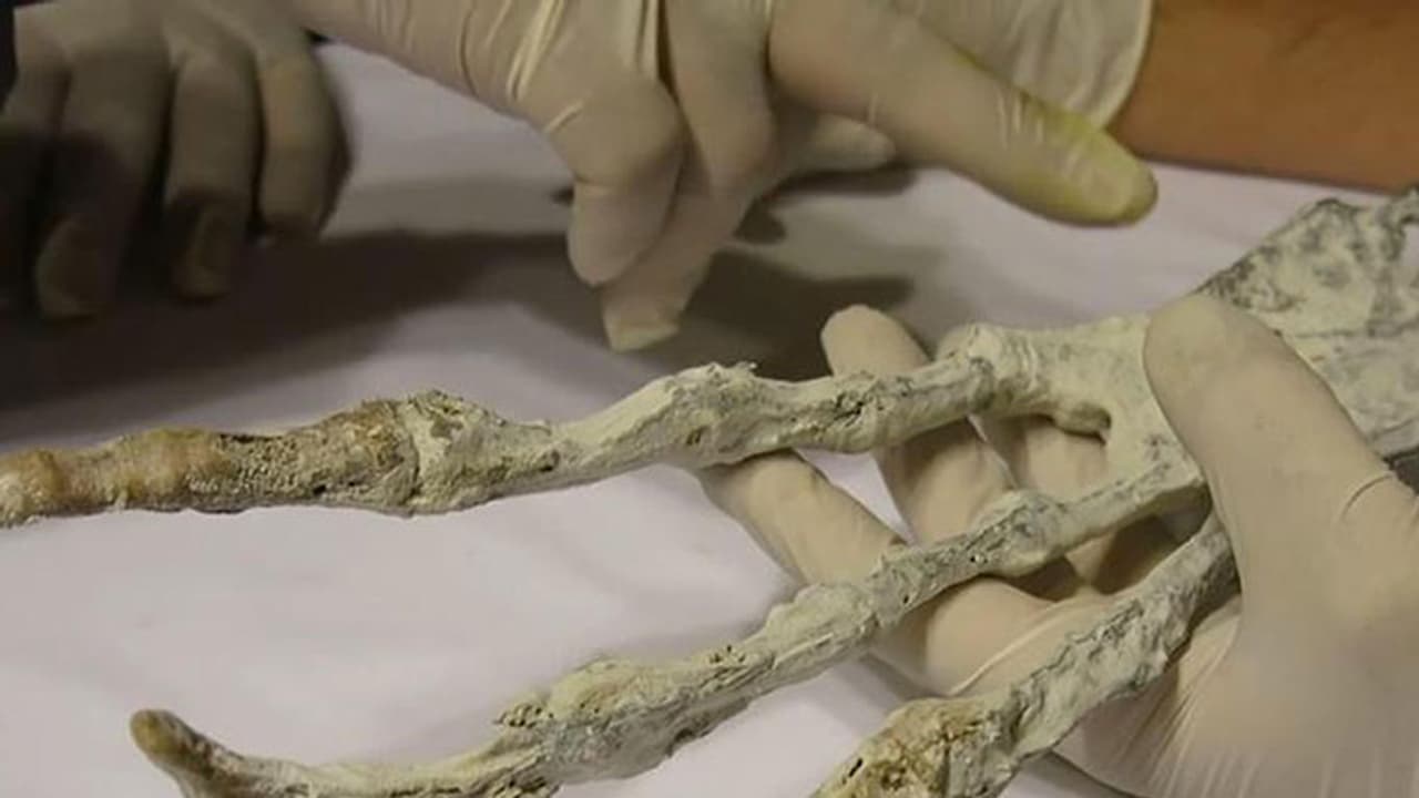 പെറുവിലെ കസ്കോ എന്ന പ്രദേശത്തെ ഒരു മരുഭൂമിയില് ഗവേഷണം നടത്തുകയായിരുന്നു ഒരു കൂട്ടം പാരാനോര്മല് ഗവേഷകര്. പരിശോധന ഒരു ഗുഹയിലേക്ക് പ്രവേശിച്ചപ്പോഴാണ് അവരത് കണ്ടത്. ഒരു കൂറ്റന് കൈപ്പത്തിയുടെ അസ്ഥികൂടം. അതില് മൂന്നു വിരലുകള് മാത്രം.