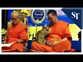ബാങ്കോക്ക്: പുതുവര്ഷ ദിനത്തില് പ്രാര്ത്ഥനയില് ഏര്പ്പെട്ടിരുന്ന ഒരു ബുദ്ധസന്യാസിയുടെ ക്ഷമ പരീക്ഷിക്കുകയാണ് ഒരു പൂച്ച. ധ്യാനത്തിന് ശ്രദ്ധിച്ചിരുന്ന സന്യാസിയുടെ മടിയില് കയറിയിരുന്ന് സ്നേഹപ്രകടനം നടത്തുകയാണ് പൂച്ച. അഞ്ചു മണിക്കൂര് നീണ്ട പ്രാര്ത്ഥനയില് പൂച്ച ഈ സന്യാസിക്കൊപ്പം ഉണ്ടായിരുന്നു എന്നാണ് സോഷ്യല് മീഡിയയിലെ വൈറലായ വീഡിയോയ്ക്കൊപ്പം പുറത്തുവന്ന വാര്ത്ത പറയുന്നത്.