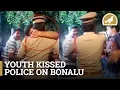 ഘോഷയാത്രയില് ഭാനുവും കൂട്ടുകാരനും ഡ്രമ്മുകളുടെ താളത്തിനൊപ്പം ആടിപ്പാടി. ഇതിനിടെ മദ്യപിച്ചിരുന്ന ഭാനു വഴിയില് നിന്ന പൊലീസുകാരനെ തടഞ്ഞു. തുടര്ന്ന് കെട്ടിപ്പിടിച്ച ശേഷം പൊലീസുകാരന് ചുണ്ടില് ഒരു ചുംബനം അങ്ങ് നല്കി. പിന്നീട് ഭാനുവിനെ പൊലീസ് അറസ്റ്റ് ചെയ്തു.