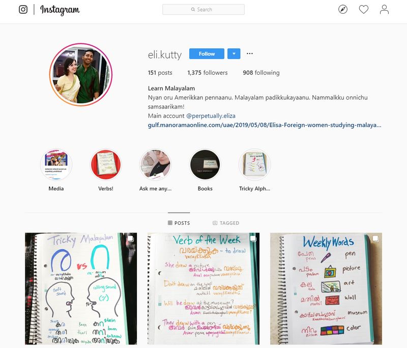 ലോകത്തെ ഇന്സ്റ്റഗ്രാമിലൂടെ മലയാളം പഠിപ്പിക്കുകയാണ് ഒരു അമേരിക്കന് പെണ്കുട്ടി. അമേരിക്കക്കാരിയായ എലീസയുടെ മലയാളം പഠനം കണ്ട് കണ്ണ് തള്ളിയിരിക്കുകയാണ് ഇന്സ്റ്റഗ്രാമിലെ മലയാളികള്.