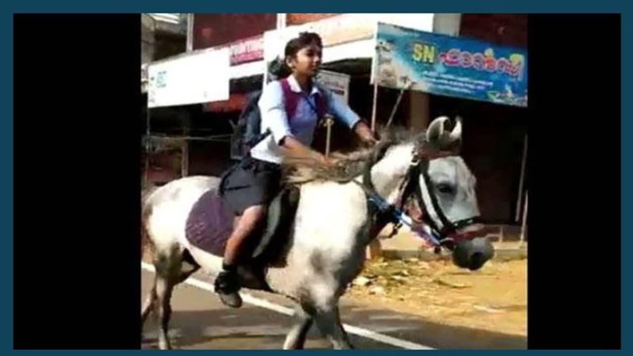 മാള: കുതിരപ്പുറത്ത് സ്കൂളില് പോകുന്ന ഒരു വിദ്യാര്ത്ഥിനി അതാണ് അടുത്തിടെ ടിക്ടോക് അടക്കമുള്ള സോഷ്യല് മീഡിയയില് വൈറലായത്. മാള ഹോളിഗ്രേഡ് സ്കൂളിലെ പത്താം ക്ലാസ് വിദ്യാര്ത്ഥിനിയായ സി.എ കൃഷ്ണയാണ് ഈ കുതിര സവാരിക്കാരി. നാരായണത്ത് മഹാവിഷ്ണു ക്ഷേത്രത്തിലെ പൂജാരി അജയ് കാലിന്ദിയുടെ മകളാണ് കൃഷ്ണ.