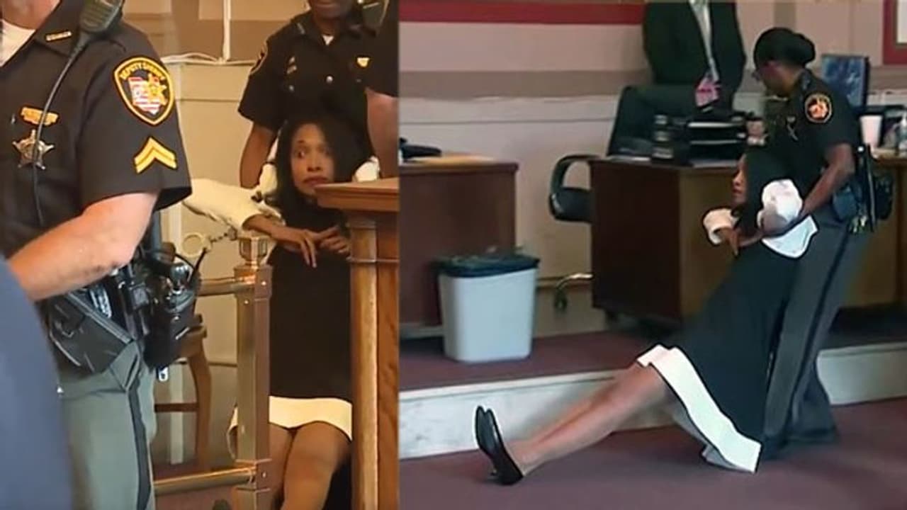 ട്രേസി ഹണ്ടര് എന്ന മുന് ജുവനൈല് കോടതി ജഡ്ജിയെയാണ് പൊലീസ് തൂക്കിയെടുത്ത് ജയിലിലാക്കിയത്. ഇന്നലെയാണ് സംഭവം. ഒരു കേസിന്റെ വിവരങ്ങള് ബന്ധുവിന് നല്കിയതിനാണ് ട്രേസിക്ക് തടവ് ശിക്ഷ വിധിച്ചത്. വിധി കേട്ട ശേഷം പൊലീസുകാര്ക്കൊപ്പം പോകാതെ നിന്ന ട്രേസിയ്ക്ക് നേരെ കോടതിയില് വിധി കേട്ട് നിന്നവര് പാഞ്ഞെത്തിയതോടെയാണ് ഇവരെ പോലീസ് വലിച്ചിഴച്ച് കൊണ്ടുപോയത്.