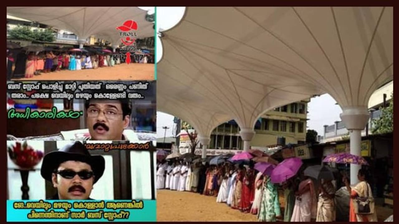 40 ലക്ഷം ചെലവാക്കി പണിത ബസ് ഷെൽട്ടറിന്റെ നേട്ടങ്ങൾ പറഞ്ഞ് ട്രോളുകൾ","ബസ് ഷെൽട്ടർ കുറച്ച് ഭംഗിയോടെ തലയെടുപ്പോടെ നിർമ്മിക്കണമെന്ന് എത് ജനപ്രതിനിധിയാണ് ആഗ്രഹിക്കാത്തത്