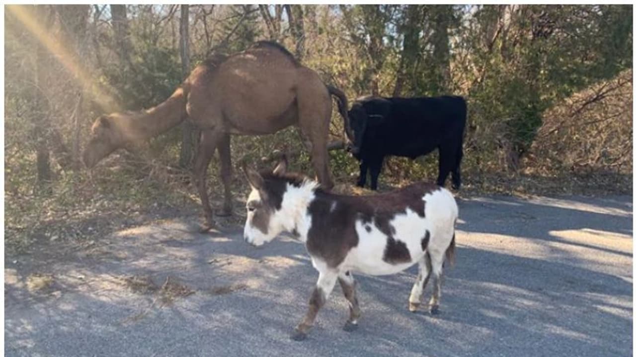 സോഷ്യൽ മീഡിയയിൽ വൈറലായിക്കൊണ്ടിരിക്കുന്ന ചിത്രമാണിത്. ഒരു ഒട്ടകവും പശുവും കഴുതയും കൂടി നടന്നു പോകുന്നു. അമേരിക്കയിലെ കൻസാസിൽ നിന്നാണ് ഈ ഫോട്ടോ സോഷ്യൽ മീഡിയയിൽ എത്തിയത്. എന്തിനാണ്, എങ്ങനെയാണ് ഇവർ മൂന്നുപേരും ഒന്നിച്ചായത് എന്ന ചോദ്യമാണ് ചിത്രം കണ്ട പലരും ചോദിച്ചത്. ഗോദ്ദാർദ്ദ് പൊലീസ് ഡിപ്പാർട്ട്മെന്റിന്റെ ഫേസ്ബുക്ക് പേജിലാണ് ഈ ചിത്രം പോസ്റ്റ് ചെയ്യപ്പെട്ടത്. നിമിഷങ്ങൾക്കകം ചിത്രം സൈബറിടത്തിൽ ചർച്ചയായി.