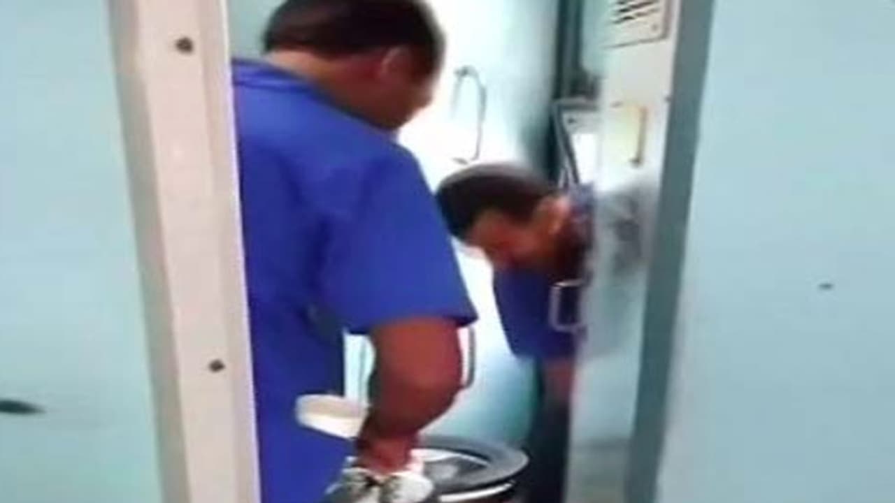 സെക്കന്ദരാബാദ് റെയില്വെ സ്റ്റേഷനില് വച്ച് ഹൈദരാബാദ് ചാര്മിനാര് എക്സ്പ്രസില് 2017 ഡിസംബറിലാണ് ഈ സംഭവം നടന്നത്. ട്രെയിനിലുണ്ടായിരുന്ന ഒരാള് മൊബൈലില് പകര്ത്തിയ വീഡിയോ വൈറലായതോടെ അന്വേഷണത്തിന് ഉത്തരവിടുകയായിരുന്നു. വീഡിയോയില് കാണുന്ന തൊഴിലാളികളെ ഇതേ തുടര്ന്ന് റെയില്വെ നീക്കം ചെയ്തിരുന്നു. ഇത്തരം പ്രവര്ത്തികള് ആവര്ത്തിക്കാതിരിക്കാന് വേണ്ട നടപടി സ്വീകരിക്കുമെന്ന് അധികൃതര് വ്യക്തമാക്കി.