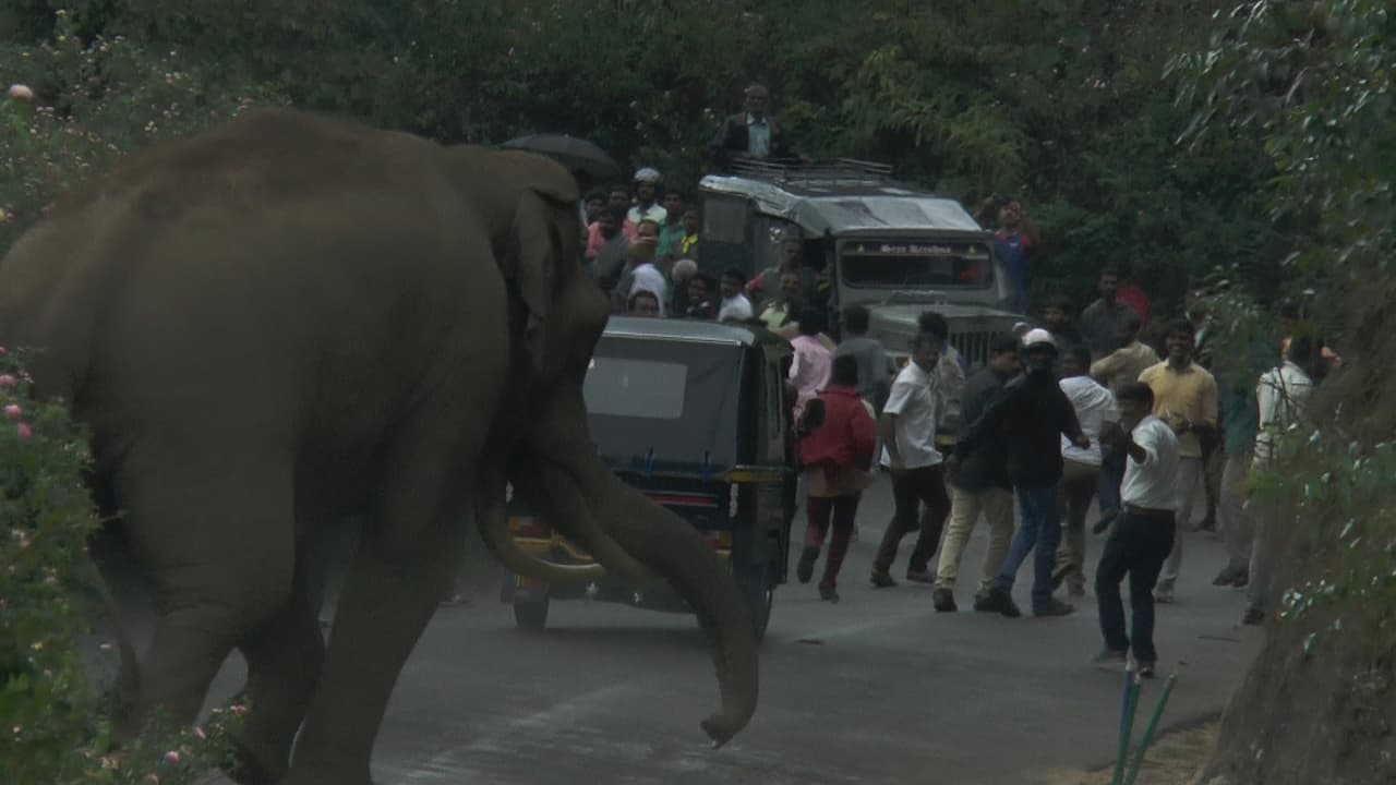 നടുറോഡില് കൊലവിളിയുമായി കൊമ്പന്- ചിത്രങ്ങള്