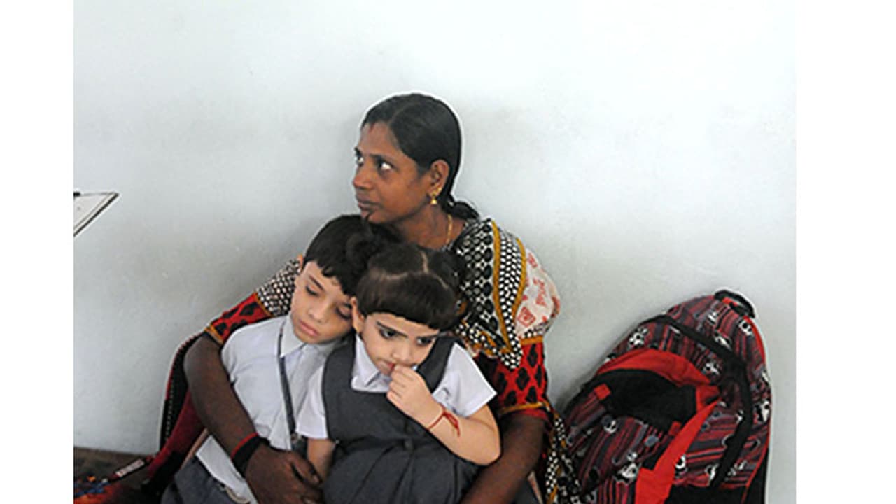 നട്ടെല്ലിന് ഗുരുതരമായി പരിക്കേറ്റതിനെത്തുടര്ന്ന് വര്ഷങ്ങളായി ചികിത്സയിലാണ്. നിരവധി അപേക്ഷകളും നിവേദനങ്ങളും നല്കിയിട്ടും ഇതുവരെ ഇന്ഷൂറന്സ് തുക ലഭിച്ചിട്ടില്ല. ഇതോടെയാണ് സന്ധ്യയും മക്കളും സമരവുമായെത്തിയത്. അപകടത്തില്പെട്ട വിവരം അറിയിക്കാന് വൈകി എന്ന സാങ്കേതിക കാരണം പറഞ്ഞാണ് തുക അനുവദിക്കാത്തത്.