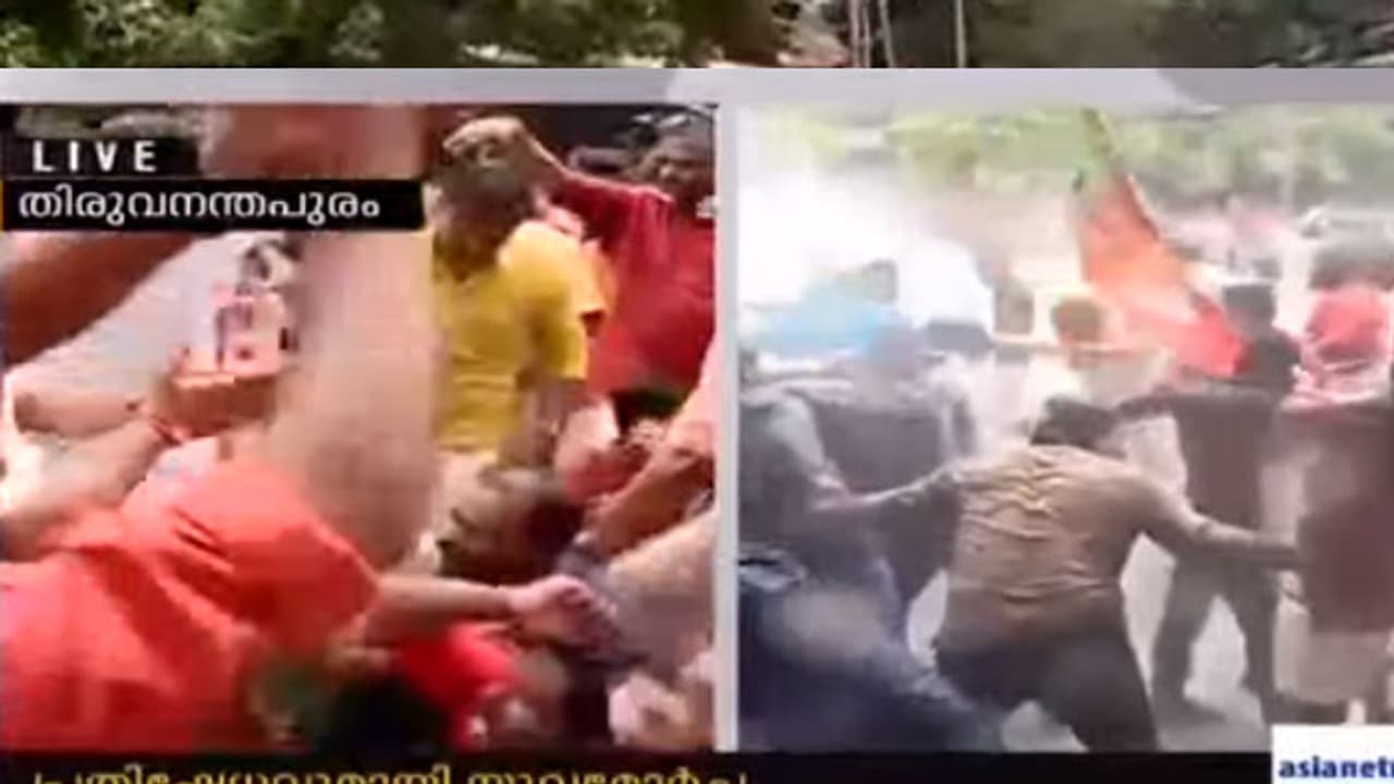 ദേവസ്വം മന്ത്രിയുടെ വീട്ടിലേക്ക് യുവമോര്ച്ച പ്രവര്ത്തകര് നടത്തിയ മാര്ച്ചില് സംഘര്ഷം. പൊലീസ് ഇപ്പോള് ജലപീരങ്കിയും കണ്ണീര് വാതക ഷെല്ലുകളും പ്രയോഗിച്ചു.