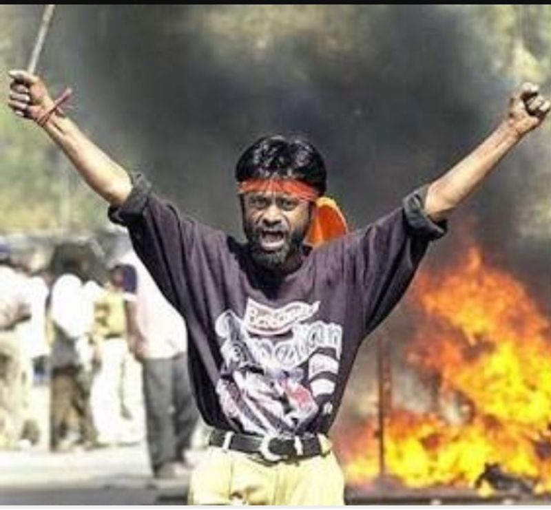 ആരും മറന്നുപോയിട്ടുണ്ടാവില്ല. രണ്ടായിരം മനുഷ്യരുടെ ജീവനും അതിലേറെ ജീവിതങ്ങളും നൂറുകണക്കിന് വർഷങ്ങൾ കൊണ്ട് കെട്ടിയുയർത്തിയ നാഗരികതയും കത്തിക്കരിഞ്ഞു പോയ ഗുജറാത്ത് കലാപകാലത്തെ ഒരു ചിത്രമാണിത്. അശോക് പാമർ എന്ന ഇദ്ദേഹം 'ചാമർ' സമുദായക്കാരനാണ്. വംശഹത്യക്കാർക്ക് ആവേശവും സമാധാനപ്രേമികളിൽ ഭീതിയും പടർത്തുന്ന വിധം കലാപത്തിന്റെ ഐക്കണായി ഈ മനുഷ്യൻ മാറിയതിനു പിന്നിൽ ഇദ്ദേഹം പറഞ്ഞ ഒരു കഥയുണ്ട് . ദുരന്തമുഖത്താണെങ്കിലും നിസ്സഹായമായ ചിരി പടർത്തുന്ന ഒരു പ്രണയനൈരാശ്യത്തിന്റെ കഥ. സ്വന്തമായി വീടും സ്ഥിരവരുമാനവുമില്ലാത്തതിനാൽ ഇയാളുടെ കാമുകി വേറൊരാളെ വിവാഹം ചെയ്തതിന്റെ തകർച്ചയിൽ നിൽക്കുമ്പോഴാണ് ഗുജറാത്തിൽ കലാപം നടക്കുന്നത്. അപ്പോഴാണ് ആരോ തലയിൽ ചുറ്റാൻ ഒരു കാവിത്തുണിയും കയ്യിൽ ഒരു ഇരുമ്പുദണ്ഡും കൊടുക്കുന്നത്. തന്റെ പ്രണയഭംഗത്തിലെ വ്യഥയും അമർഷവുമാണയാൾ അലറിത്തീർത്തിട്ടുണ്ടാവുക. സൂക്ഷിച്ചു നോക്കിയാൽ ജാതിഹിന്ദുത്വവും രാഷ്ട്രീയ സാമ്പത്തിക ഘടനയുമല്ലേ ആ പ്രണയത്തെ അപഹരിച്ചത്?