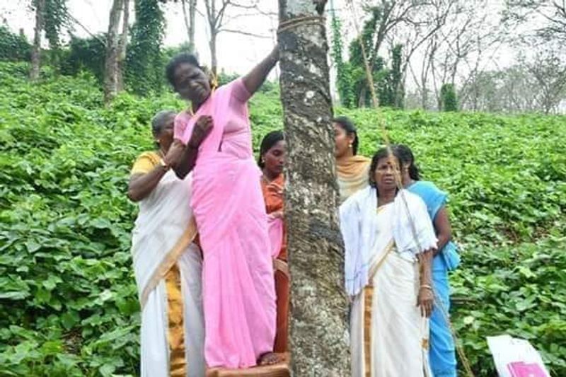 ശബരിമലയിൽ സ്ത്രീപ്രവേശനത്തിനെതിരെ ആത്മാഹുതിക്കൊരുങ്ങുന്ന ആദിവാസി സ്ത്രീയുടെ ചിത്രം. പേര് രത്നമ്മ. ആദിവാസികളുടെ ആരാധനാവകാശങ്ങൾ മുഴുവൻ ചവിട്ടിത്തൊഴിച്ച ബ്രാഹ്മണ്യത്തിന്റെ കുതന്ത്രങ്ങളുടെ കയററ്റത്താണ് തന്റെ കഴുത്തെന്ന് അവരറിയുന്നതേയില്ലല്ലോ.