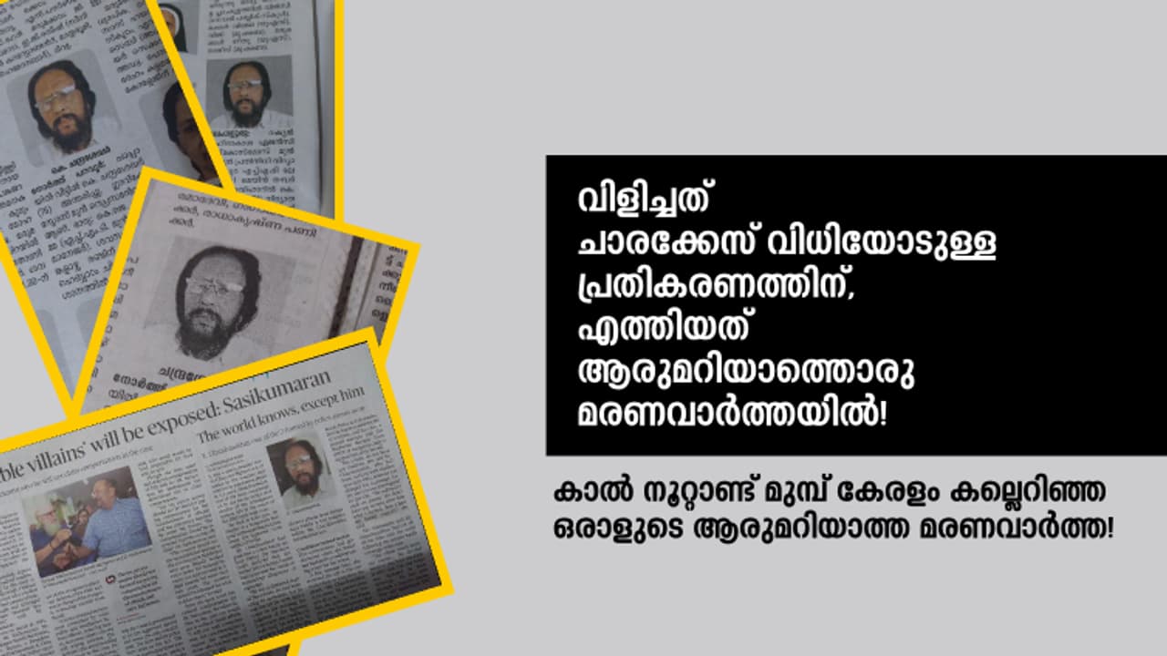 ചാരക്കേസുമായി ബന്ധമുള്ളവരിലേറെയും വാര്ത്തകളില് നിറഞ്ഞുനില്ക്കുന്നതിനിടെ ആരുമറിയാതെ സംഭവിച്ച ഈ മരണം എന്നാല്, പിറ്റേന്ന് ചില മാധ്യമങ്ങളിലെങ്കിലും വാര്ത്തയായി. ചാരക്കേസുമായി ബന്ധപ്പെട്ട വാര്ത്തകള് പ്രാധാന്യത്തോടെ നല്കിയ ആ പത്രങ്ങളുടെ ചരമ പേജില്, എന്നാല്, അത് വെറുമൊരു ഒറ്റക്കോളം ചരമവാര്ത്തയായിരുന്നു.