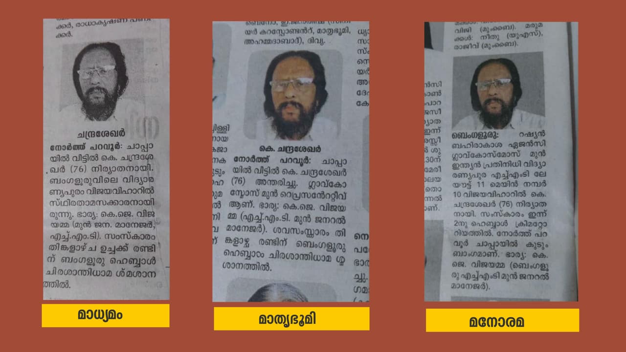കുറ്റം ആരുടേതുമല്ല. യാദൃശ്ചികമായി ഞങ്ങള് ആ വാര്ത്തയിലേക്കു എത്തപ്പെടുകയായിരുന്നു. ചരമ വാര്ത്ത എഴുതിയവര് ചന്ദ്രശേഖറിനെ തിരിച്ചറിഞ്ഞില്ല എന്നുമാത്രം.