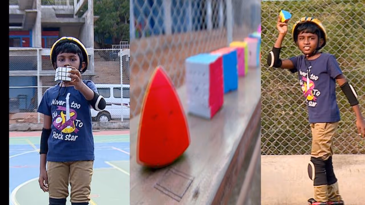 തിരുവനന്തപുരം: റൂബിക്സ് ക്യൂബും റോളർ സ്കേറ്റിംഗും, രണ്ടും അത്യാവശ്യം ബുദ്ധിമുട്ടാണ്. എന്നാൽ ഇവ ഒരേസമയം ചെയ്യുന്ന പത്തു വയസ്സുകാരനുണ്ട് തിരുവനന്തപുരം പോത്തൻകോട്. റുബിക്സ് ക്യൂബ് പിടിച്ച് ഒരേ നിരയിലുള്ള ചക്രങ്ങളിൽ ദേവസാരംഗ് കുതിച്ചുകയറിയത് ഇന്ത്യ വേൾഡ് റെക്കോർഡ്സ് ഉൾപ്പടെയുള്ള നേട്ടങ്ങളിലേക്കാണ്.