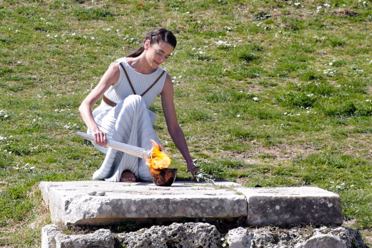 ഗ്രീക്ക് നടി സാന്റി ജോര്ജിയോ മഹാപുരുോഹിതയായി എത്തി സൂര്യപ്രകാശത്തിൽ നിന്ന് ഒളിംപിക് ദീപം തെളിച്ചു. 2016ലെ ഗെയിംസില് ഗ്രീക്ക് ഷൂട്ടിംഗ് ചാംപ്യന് ആയ അന്നാ കോരക്കാകി ആണ് ആദ്യം ദീപശിഖയേന്തിയത്. അന്നയിൽ നിന്ന് 2004ലെ ഗെിംസില് സ്വര്ണം നേടിയ ജാപ്പനീസ് മാരത്തോൺ താരം മിസുകി നോഗൗച്ചി ദീപശിഖ സ്വീകരിച്ചു.